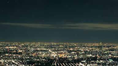 高尾山のビアガーデンから、東京の夜景を一望した写真の様子です。いや〜、ここは本当に凄いです。180度夜景な感じです。
